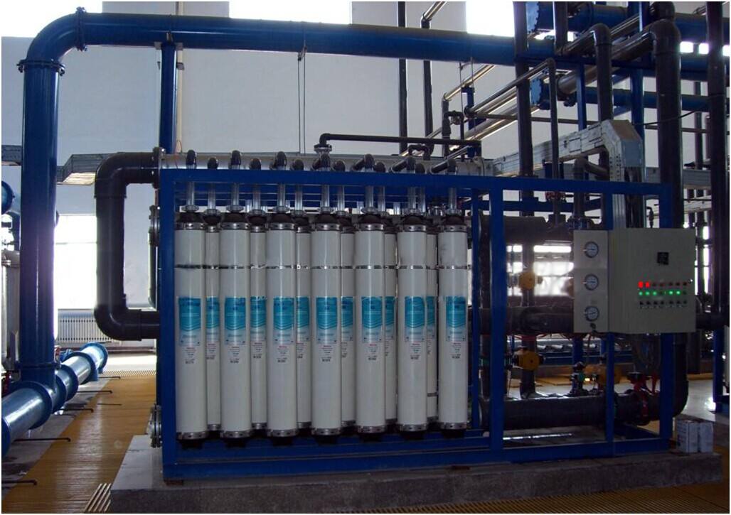 系統(tǒng)設(shè)備組成:超濾膜組件、超濾反洗裝置、超濾清洗裝置、配套儀表、閥門(mén)、管道及本體組架等。