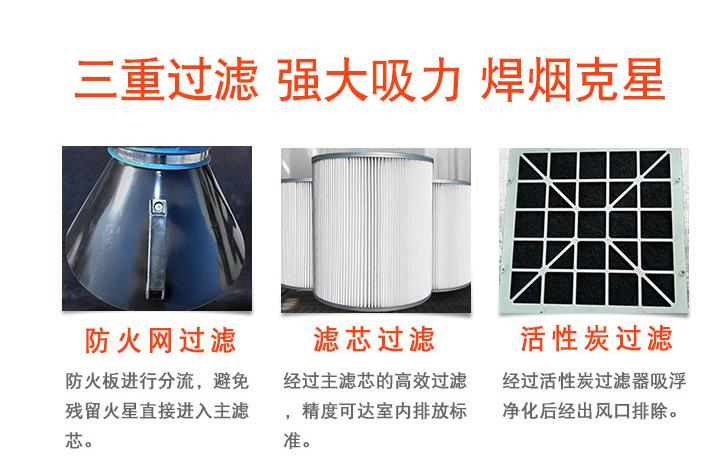 移動(dòng)式濾筒除塵器又稱(chēng)焊煙凈化器,是針對(duì)各種工業(yè)需求設(shè)計(jì)的移動(dòng)式高效凈化器,適用于局部焊接煙塵處理的一-種節(jié)能、環(huán)保、經(jīng)濟(jì)型焊煙凈化器,可選用不同型號(hào)的活動(dòng)臂管和排氣風(fēng)機(jī),使其在不同的工作地點(diǎn)移動(dòng)更方便、更靈活。移動(dòng)式焊煙凈化器移動(dòng)靈活平穩(wěn),煙塵捕獲率高,操作簡(jiǎn)單,后續(xù)維修費(fèi)用低。通過(guò)風(fēng)機(jī)引力作用,焊煙廢氣經(jīng)萬(wàn)向吸塵罩吸入設(shè)備進(jìn)風(fēng)口,設(shè)備進(jìn)風(fēng)口處設(shè)有阻火器,火花經(jīng)阻火器被阻留,煙塵氣體進(jìn)入凈化器內(nèi),利用重力與上行氣流, 首先將粗粒塵直接降至底部,微粒煙塵被濾芯捕集在外表面,潔凈氣體經(jīng)濾芯過(guò)濾凈化后,由濾芯中心流入潔凈室,潔凈空氣又經(jīng)活性碳過(guò)濾器吸附進(jìn)一步凈化后經(jīng)出風(fēng)口達(dá)標(biāo)排出。